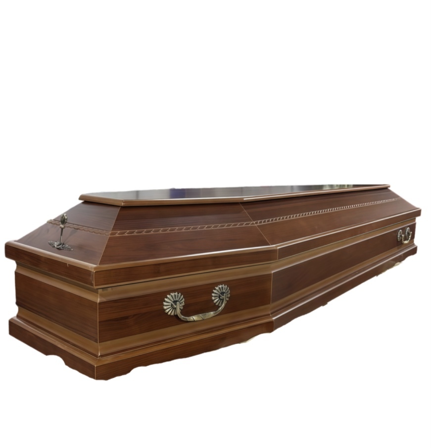Самая популярная классическая модель шестигранного гроба орехового цвета